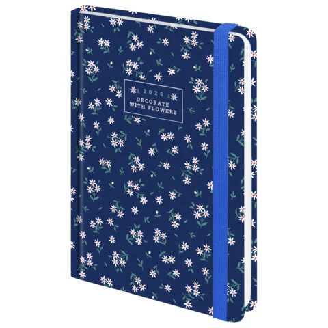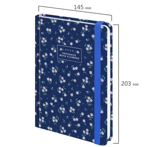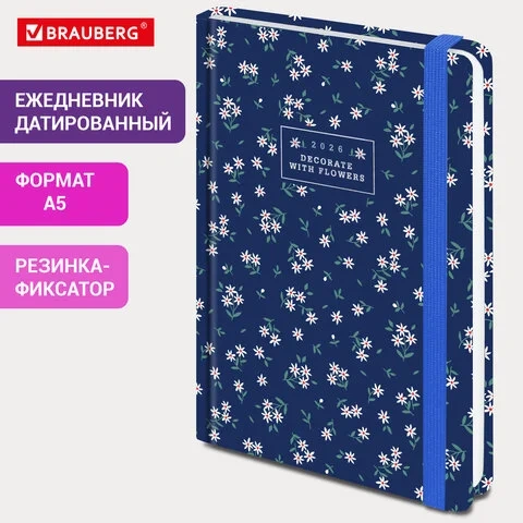 Ежедневник датированный 2026 с резинкой 145х203 мм, А5, BRAUBERG, твердый, фольга, 'Ромашки', 117346