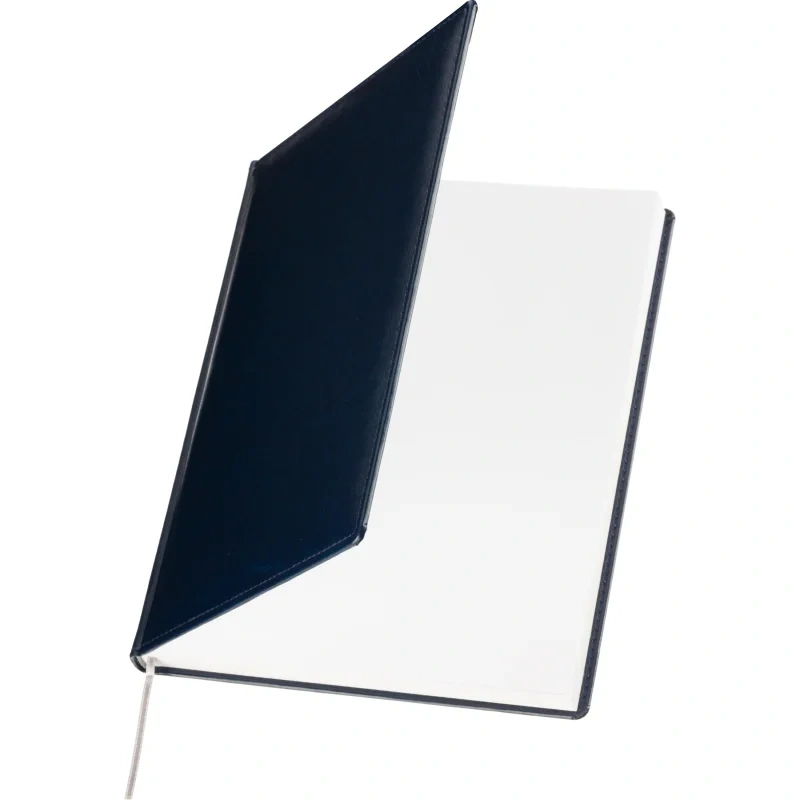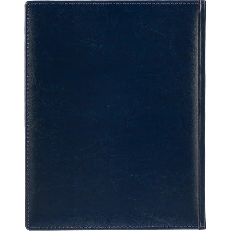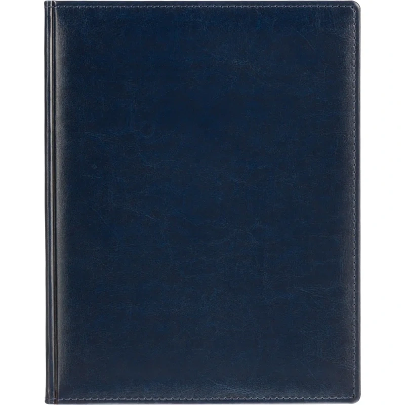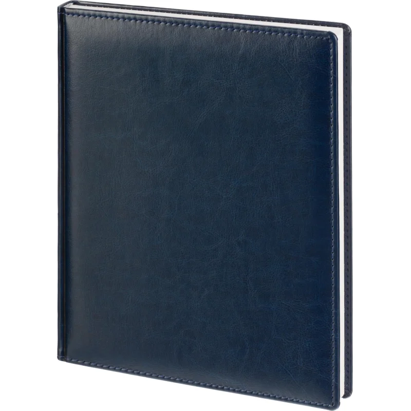 Данный ежедневник имеет формат A4, содержит 168 листов. Твёрдая обложка с поролоном, выполненная из высококачественной искуственной кожи синий цвета, придает изделию элегантный и профессиональный вид. Страницы выполнены из белой офсетной бумаги плотностью 70 г/кв.м. Дизайн обложки: универсальный.
