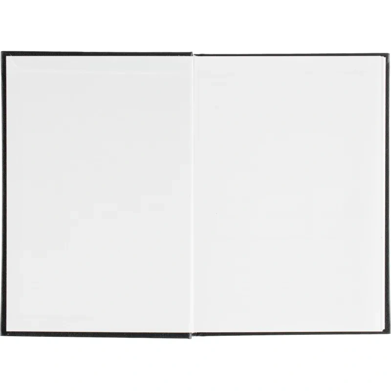 Размер блока составляет 140×200 мм, а размер изделия — 147×206 мм. Обложка выполнена из твёрдого картона и бумвинила чёрного цвета, что придаёт изделию элегантный и универсальный офисный вид. Прошитый тип крепления надёжно удерживает блок.
