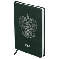 Ежедневник датированный формата А5 из коллекции «Eagle». Обложка изготовлена из высококачественного кожзаменителя, имитирующего натуральную глянцевую кожу, с поролоновой прослойкой, цвет обложки - зеленый. Подходит для всех видов полиграфического тиснения. Внутренний блок состоит из 176 листов офсетной бумаги плотностью 70 г/м2, печать блока в 2 краски, справочный материал. Удобная закладка-ляссе и перфорированные уголки.