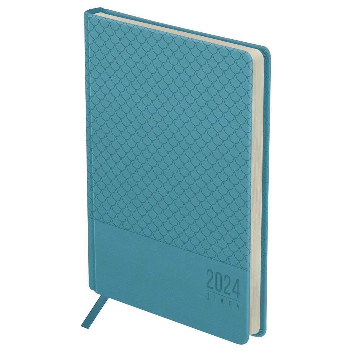 Ежедневник датированный формата А5 из коллекции «Pattern». Обложка изготовлена из высококачественного кожзаменителя, имитирующего натуральную глянцевую кожу, с поролоновой прослойкой, цвет обложки - светло-синий. Подходит для всех видов полиграфического тиснения. Внутренний блок состоит из 176 листов офсетной бумаги плотностью 70 г/м2, печать блока в 2 краски, справочный материал. Удобная закладка-ляссе и перфорированные уголки.