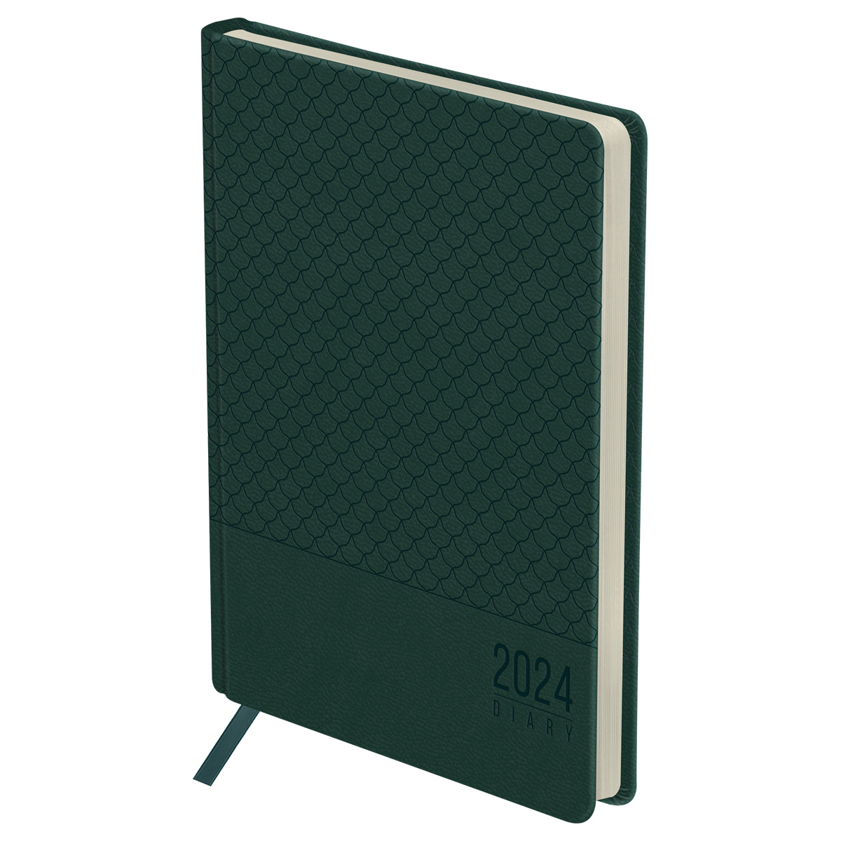 Ежедневник датированный формата А5 из коллекции «Pattern». Обложка изготовлена из высококачественного кожзаменителя, имитирующего натуральную глянцевую кожу, с поролоновой прослойкой, цвет обложки - темно-бирюзовый. Подходит для всех видов полиграфического тиснения. Внутренний блок состоит из 176 листов офсетной бумаги плотностью 70 г/м2, печать блока в 2 краски, справочный материал. Удобная закладка-ляссе и перфорированные уголки.