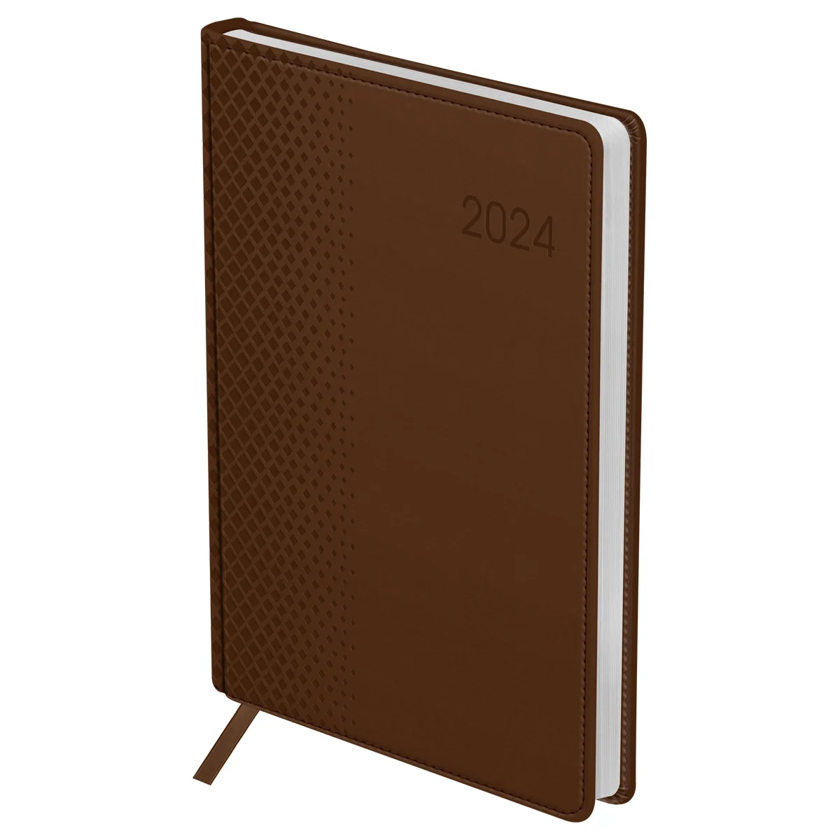 Ежедневник датированный формата А5 из коллекции «Victor». Обложка изготовлена из высококачественного кожзаменителя, имитирующего натуральную глянцевую кожу, с поролоновой прослойкой, цвет обложки - коричневый. Подходит для всех видов полиграфического тиснения. Внутренний блок состоит из 176 листов офсетной бумаги плотностью 70 г/м2, печать блока в 2 краски, справочный материал. Удобная закладка-ляссе и перфорированные уголки.