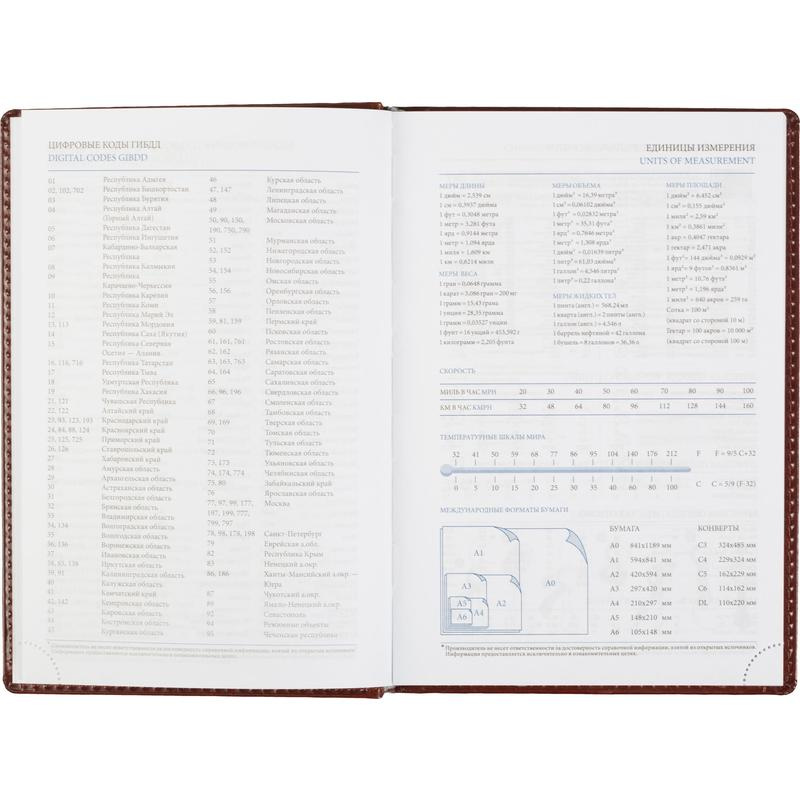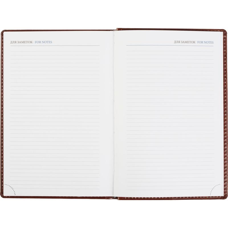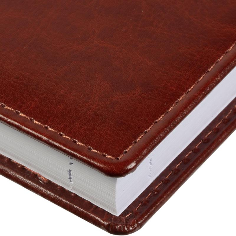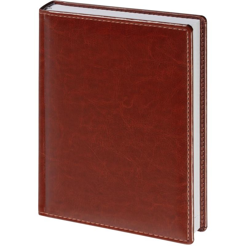 Ежедневник датированный 2023 год Attache Agenda A5 148?218 мм. Однотонная обложка из высококачественного переплетного материала коричневого цвета, имитирующего натуральную кожу, с поролоном. Гладкая фактура с легким блеском. По периметру отделочная строчка в цвет материала. Возможно нанесение логотипа на обложку любым способом тиснения. Блок: датированный 2023 г., белый офсет плотностью 70 г/кв.м (линейка), перфорация уголка, ляссе серебристого цвета, 176 листов (352 страницы), печать блока в 2 краски. Содержит