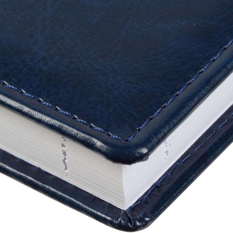 Ежедневник датированный 2023 год Attache Agenda A5 148?218 мм. Однотонная обложка из высококачественного переплетного материала синего цвета, имитирующего натуральную кожу, с поролоном. Гладкая фактура с легким блеском. По периметру отделочная строчка в цвет материала. Возможно нанесение логотипа на обложку любым способом тиснения. Блок: датированный 2023 г., белый офсет плотностью 70 г/кв.м (линейка), перфорация уголка, ляссе серебристого цвета, 176 листов (352 страницы), печать блока в 2 краски. Содержит