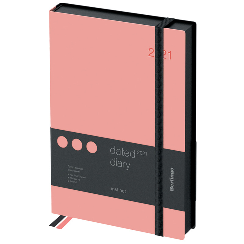 Ежедневник датированный Berlingo Instinct черный/фламинго, А5, 184 листа, 2021, кожзам