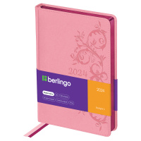 Датированный ежедневник на 2024 год Berlingo Starlight S формата А5 (150*215 мм) ? стильное решение для планирования. Обложка ежедневника с поролоновой прослойкой и прострочкой по периметру изготовлена из высококачественной экокожи с мягкой гладкой матовой поверхностью и элегантным имиджевым тиснением. Цвет обложки ? розовый. Изделие дополняет розовый фольгированный срез внутреннего блока из 184 листов высококачественной кремовой бумаги повышенной плотности 80 г/м2 с пантонной печатью в 2 краски. Справочный материал, перфорированные уголки блока, отрывные заметки и 2 закладки-ляссе помогут комфортно использовать ежедневник. Также внутри есть бланки-извещения о ДТП. 3 дополнительных комплекта брендированных стикеров станут отличным подарком. Упакован в термоусадочную плёнку.