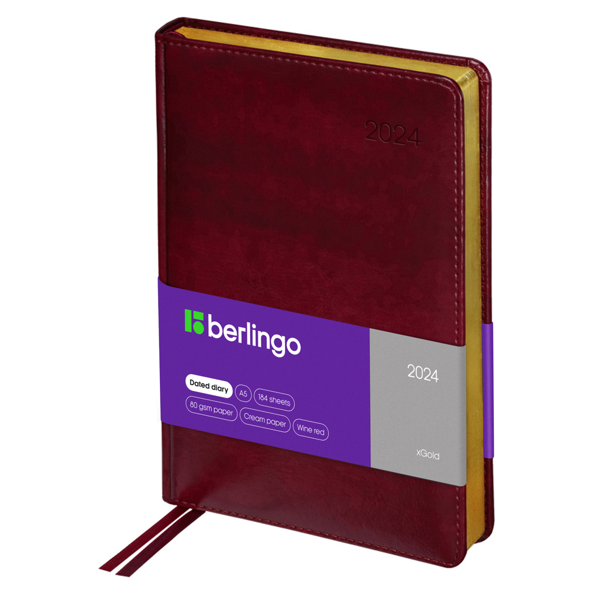 Ежедневник датированный Berlingo xGold бордовый, A5, 184 листа, под кожу, зол. срез, 2024