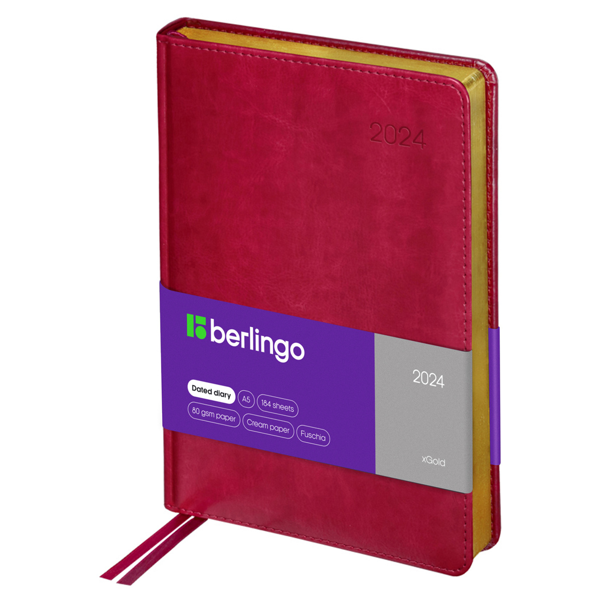 Ежедневник датированный Berlingo xGold фуксия, A5, 184 листа, под кожу, зол. срез, 2024