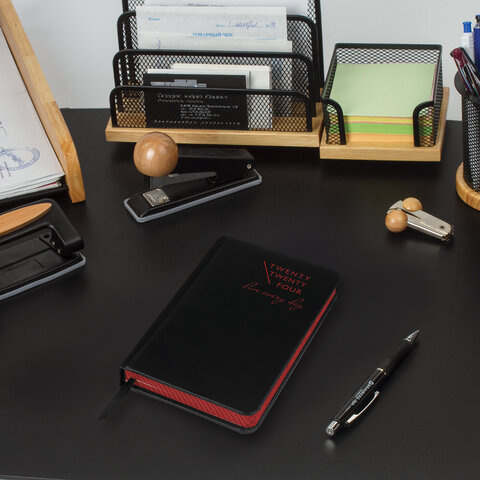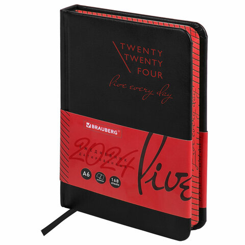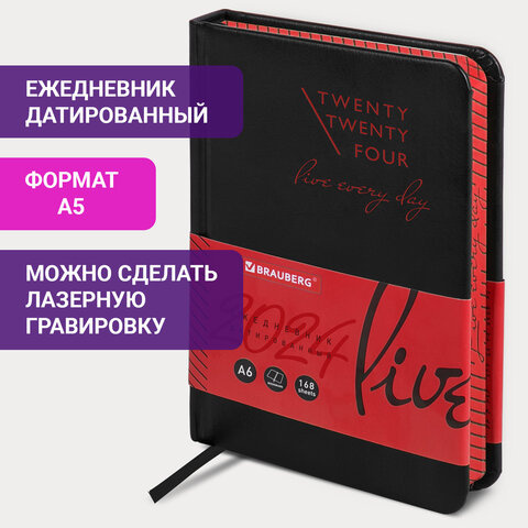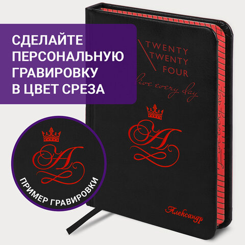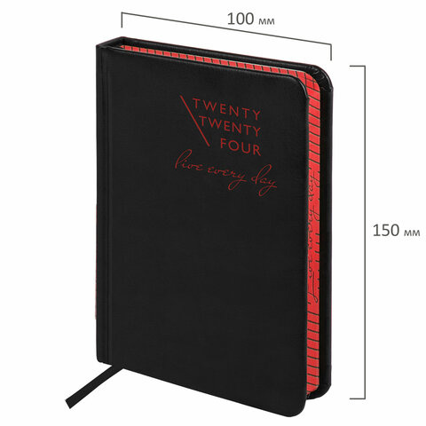 Ежедневник датированный Brauberg Chameleon черный/красный, А6, под кожу, 2024