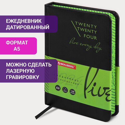 Ежедневник датированный Brauberg Chameleon черный/зеленый, А6, под кожу, 2024
