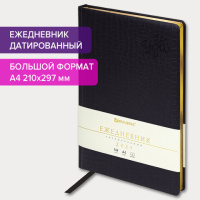 Ежедневник датированный Brauberg Comodo черный, А4, под кожу, 2024