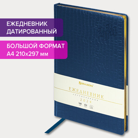 Ежедневник датированный Brauberg Comodo синий, А4, под кожу, 2024