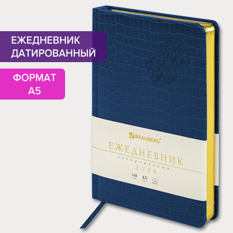 Ежедневник датированный Brauberg Comodo синий, A5, под кожу, 2024