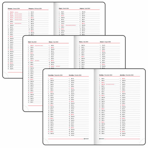 Внутренний блок включает 168 листов белой бумаги плотностью 70 г/м2. Каждая страничка имеет перфорированный угол. Благодаря стандартному формату А5 (138х213 мм) ежедневник удобно использовать как в офисе, так и на выездных деловых встречах. Жесткая книжная обложка благородного коричневого цвета стилизована под искусственную кожу с мелким рисунком, фиксируется резинкой, поэтому ежедневник не откроется в сумке или портфеле и страницы не помнутся. Материал обложки подходит для горячего тиснения. Для удобства пользования ежедневник снабжен держателем для фиксации ручки. Дополнением является закладка-ляссе, с помощью которой при необходимости можно быстро открыть ежедневник на нужной странице. Помимо прочего, ежедневник снабжен обширным справочным материалом.