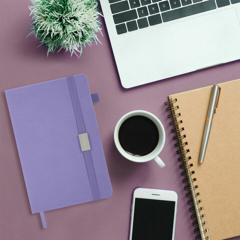 Ежедневник датированный Brauberg Control сиренвый, A5, под кожу, держатель для ручки, 2024