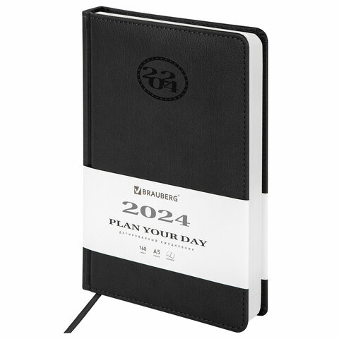 Ежедневник датированный Brauberg Favorite черный, A5, под кожу, 2024