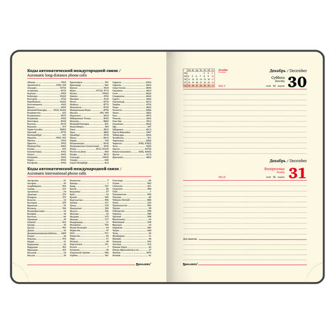 Материал обложки подходит для горячего тиснения. Цветной срез в цвет обложки придает ежедневнику особый шарм. Дополнением является закладка-ляссе, с помощью которой при необходимости можно быстро открыть ежедневник на нужной странице. Помимо прочего, ежедневник снабжен обширным справочным материалом.