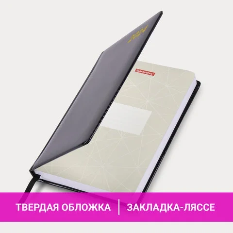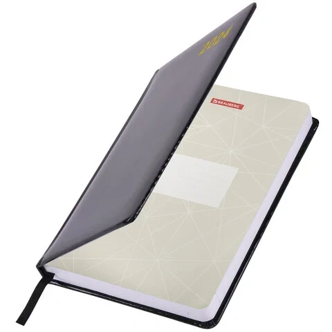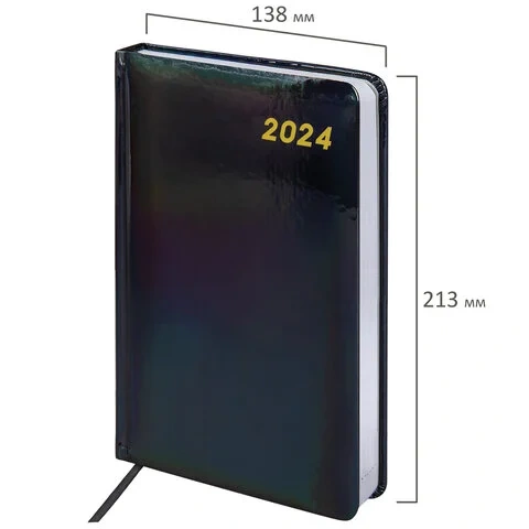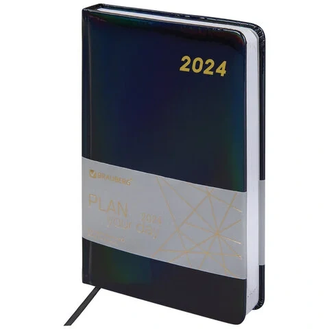 Ежедневник датированный Brauberg Holiday черный зеркальный, A5, под кожу, 2024