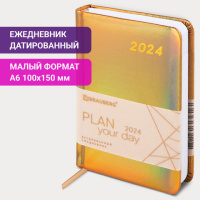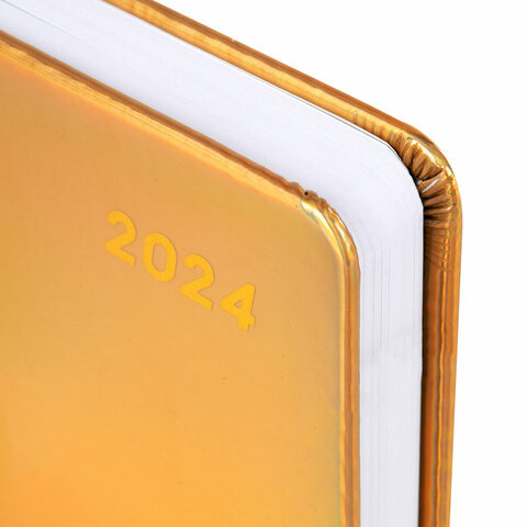 Ежедневник датированный Brauberg Holiday золотистый, А6, под кожу, 2024