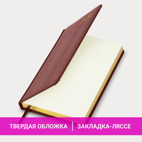 Внутренний блок включает 168 листов тонированной бумаги плотностью 70 г/м2. Каждая страничка имеет перфорированный угол. Благодаря стандартному формату А5 (138х213 мм) ежедневник удобно использовать как в офисе, так и на выездных деловых встречах. Твердая обложка стилизована под кожу рептилии классического коричневого цвета. Подходит для горячего тиснения. Срез ежедневника фольгирован золотой фольгой, что придает ему особый шарм. Дополнением является закладка-ляссе, с помощью которой при необходимости можно быстро открыть ежедневник на нужной странице. Помимо прочего, ежедневник снабжен обширным справочным материалом.