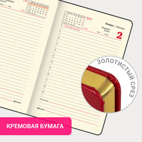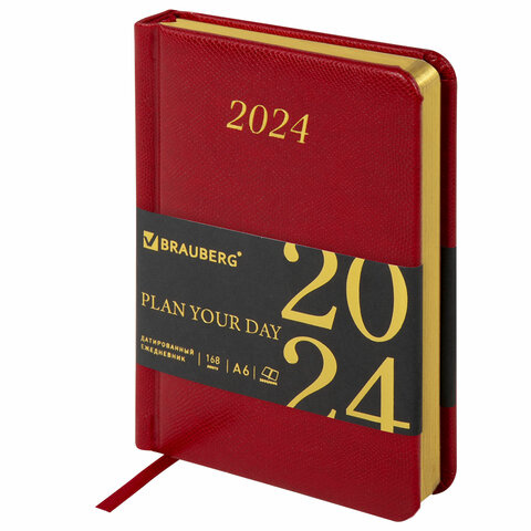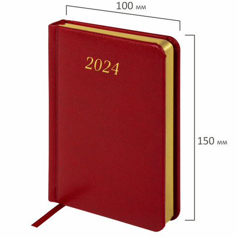 Ежедневник датированный Brauberg Iguana красный, А6, под кожу, 2024
