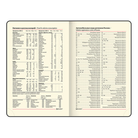 Внутренний блок включает 168 листов тонированной бумаги плотностью 70 г/м2. Каждая страничка имеет перфорированный угол. Благодаря малому формату А6 (100х150 мм) ежедневник удобно использовать как в офисе, так и на выездных деловых встречах. Твердая обложка классического коричневого цвета стилизована под кожу рептилии. Подходит для горячего тиснения. Срез ежедневника фольгирован золотой фольгой, что придает ему особый шарм. Дополнением является закладка-ляссе, с помощью которой при необходимости можно быстро открыть ежедневник на нужной странице. Помимо прочего, ежедневник снабжен обширным справочным материалом.