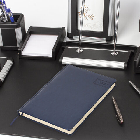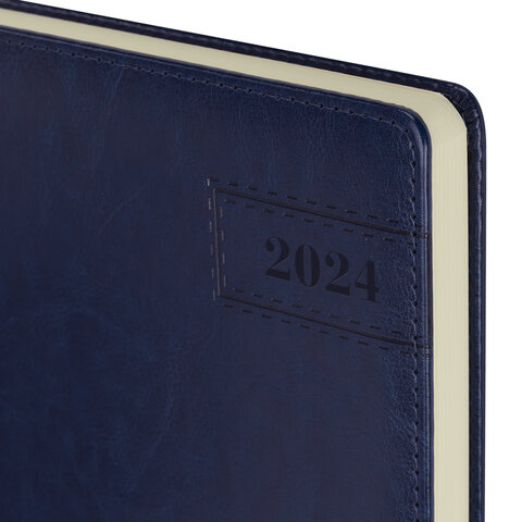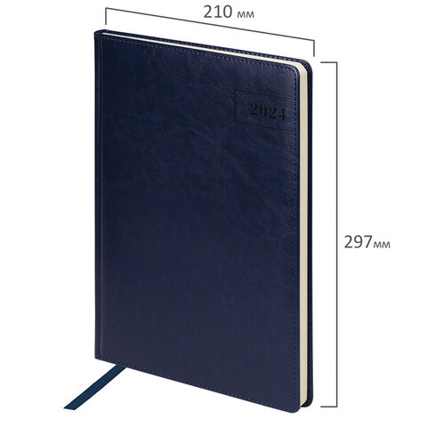 Ежедневник датированный Brauberg Imperial синий, А4, под кожу, 2024