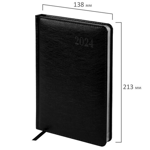 Ежедневник датированный Brauberg Impression черный, A5, под кожу, 2024