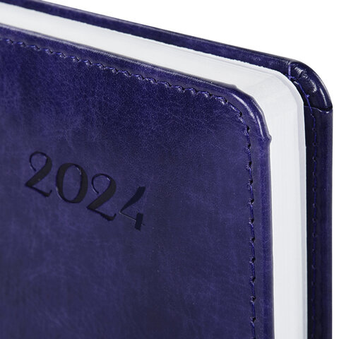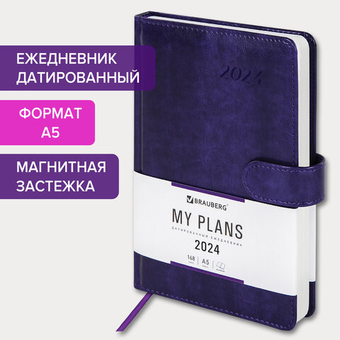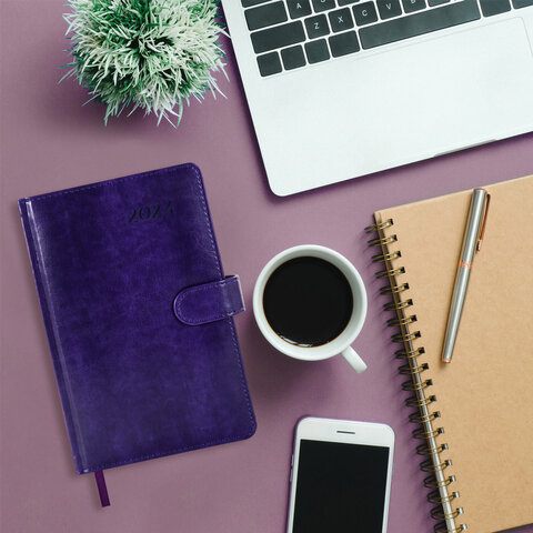 Ежедневник датированный Brauberg Legend фиолетовый, A5, под кожу, застежка, 2024