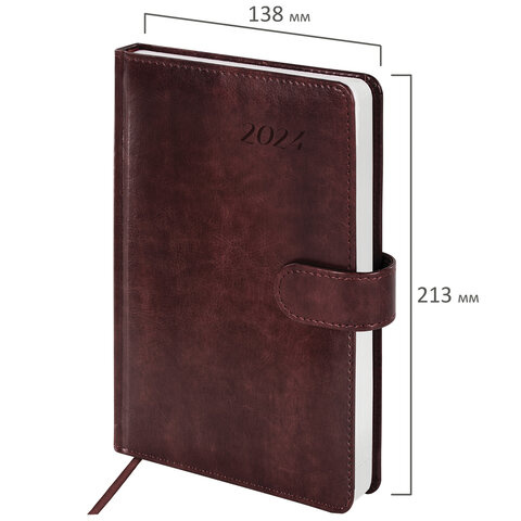 Ежедневник датированный Brauberg Legend коричневый, A5, под кожу, застежка, 2024