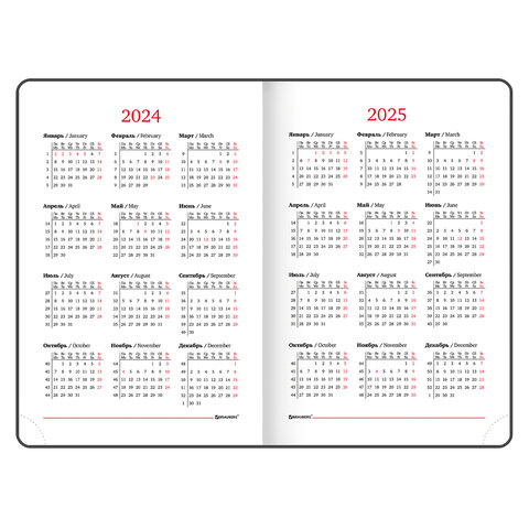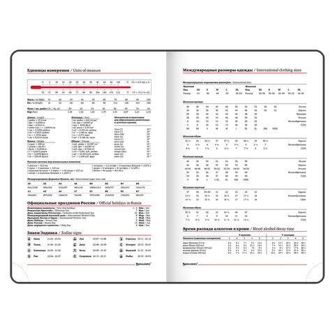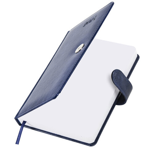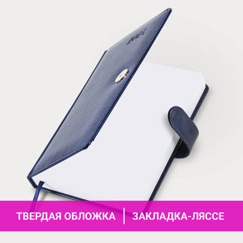 Внутренний блок включает 168 листов белой бумаги плотностью 70 г/м2. Каждая страничка имеет перфорированный угол. Благодаря стандартному формату А5 ежедневник удобно использовать как в офисе, так и на выездных деловых встречах. Жесткая книжная обложка, прошитая по периметру, с легкой рельефной фактурой, напоминающей натуральную кожу, фиксируется магнитной застежкой, поэтому ежедневник не откроется в сумке или портфеле и страницы не помнутся.