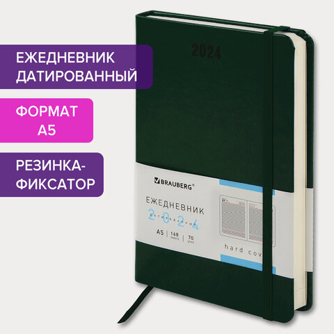 Ежедневник датированный Brauberg Metropolis Special зеленый, A5, под кожу, 2024