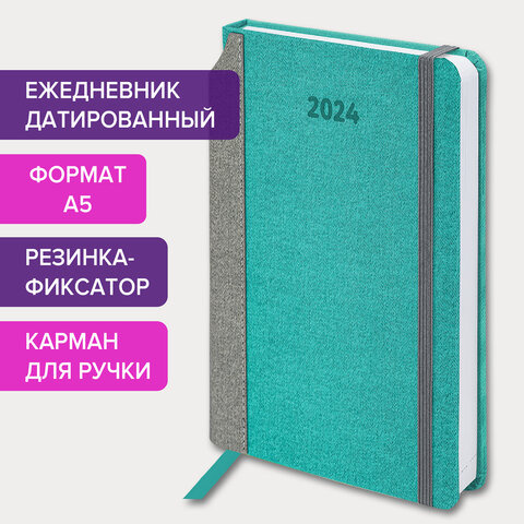 Ежедневник датированный Brauberg Mosaic бирюзовый, A5, под кожу, 2024