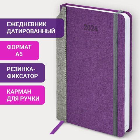 Ежедневник датированный Brauberg Mosaic фиолетовый, A5, под кожу, 2024