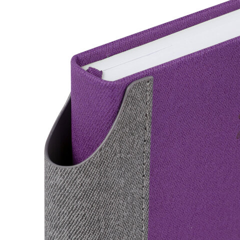 Материал обложки подходит для горячего тиснения. Для удобства пользования ежедневник снабжен карманом для фиксации ручки. Дополнением является закладка-ляссе, с помощью которой при необходимости можно быстро открыть ежедневник на нужной странице. Помимо прочего, ежедневник снабжен обширным справочным материалом. Выполнен в стильном сочетании фиолетового и серого цветов.