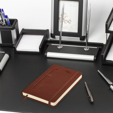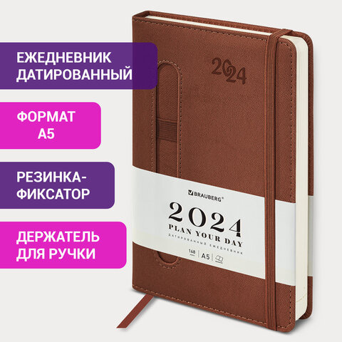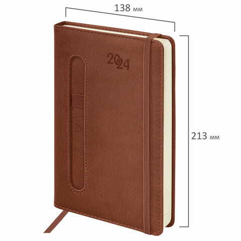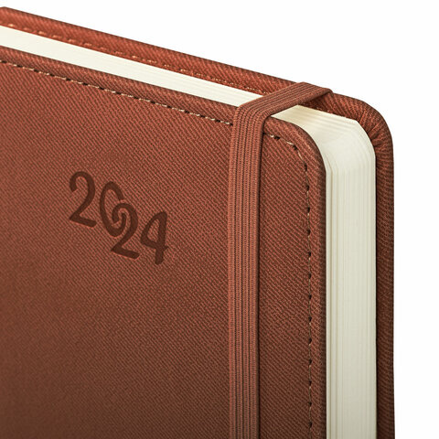 Ежедневник датированный Brauberg Optimal коричневый, A5, под кожу, резинка-фиксатор, 2024