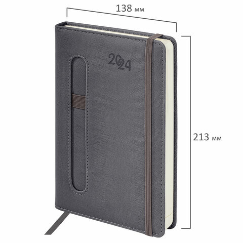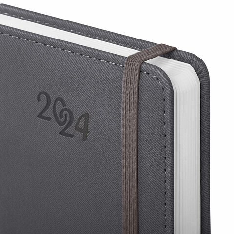 Ежедневник датированный Brauberg Optimal серый, A5, под кожу, резинка-фиксатор, 2024