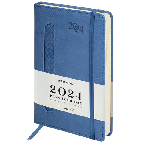 Ежедневник датированный Brauberg Optimal синий, A5, под кожу, резинка-фиксатор, 2024
