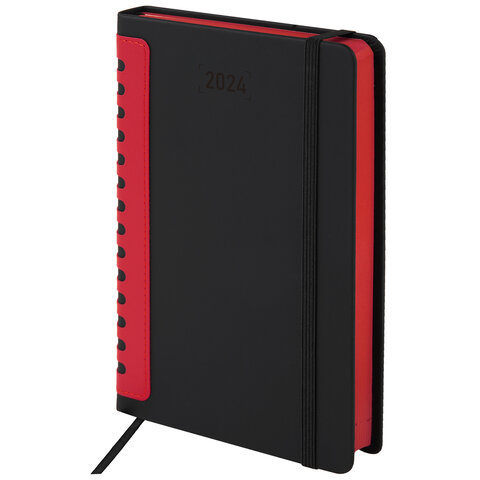 Ежедневник датированный Brauberg Original черный/красный, A5, под кожу, 2024