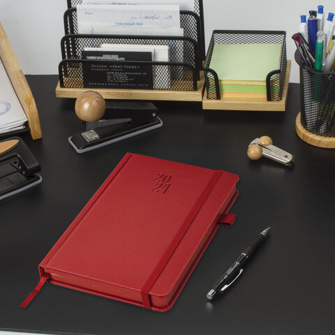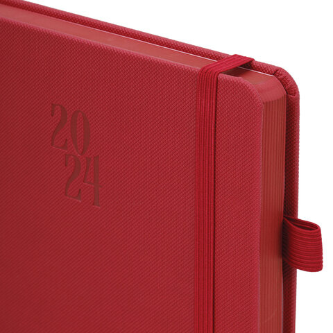 Ежедневник датированный Brauberg Plain красный, A5, под кожу, с резинкой, 2024