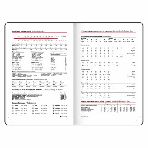 Дополнением является закладка-ляссе, с помощью которой при необходимости можно быстро открыть ежедневник на нужной странице и держатель для ручки. Помимо прочего, ежедневник снабжен справочным материалом.