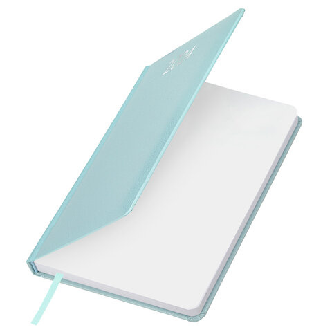 Внутренний блок включает 168 листов белой бумаги плотностью 70 г/м2. Каждая страничка имеет перфорированный угол. Благодаря стандартному формату А5 (138х213 мм) ежедневник удобно использовать как в офисе, так и на выездных деловых встречах. Жесткая книжная обложка с легкой рельефной фактурой напоминает натуральную кожу нежного мятного оттенка. Материал обложки - балакрон, подходит для тиснения только фольгой. Дополнением является закладка-ляссе, с помощью которой при необходимости можно быстро открыть ежедневник на нужной странице. Помимо прочего, ежедневник снабжен обширным справочным материалом.