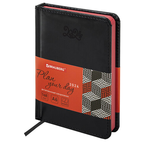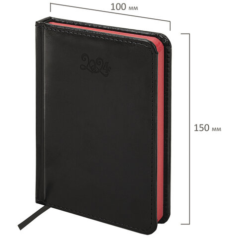 Ежедневник датированный Brauberg Rainbow черный, А6, под кожу, 2024