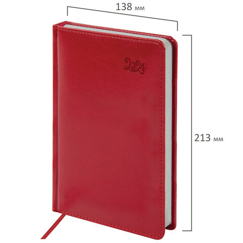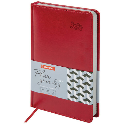 Ежедневник датированный Brauberg Rainbow красный, A5, под кожу, 2024