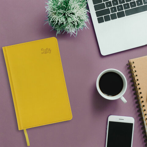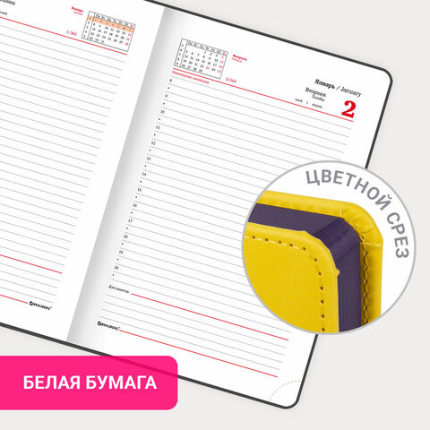 Ежедневник датированный Brauberg Rainbow желтый, A5, под кожу, 2024