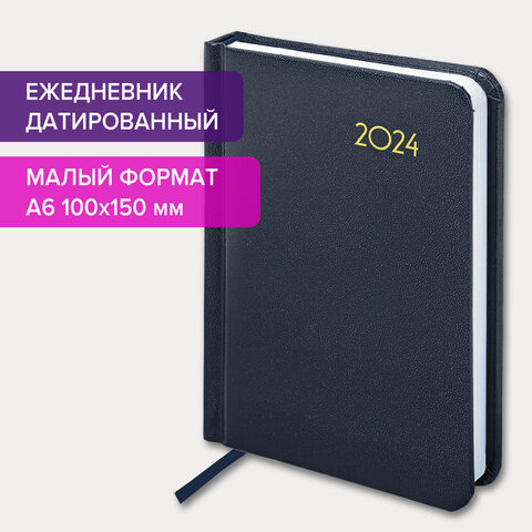 Ежедневник датированный Brauberg Select синий, А6, балакрон, 2024
