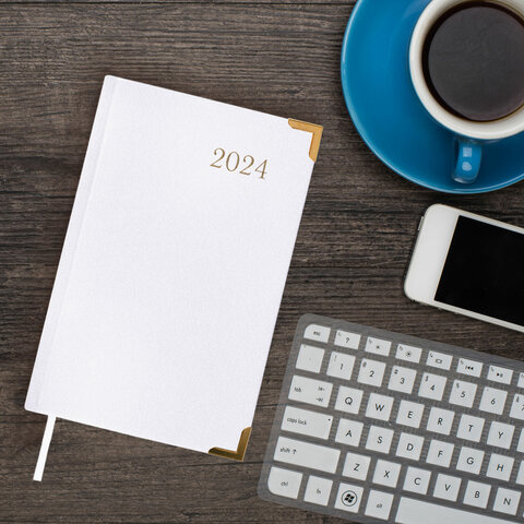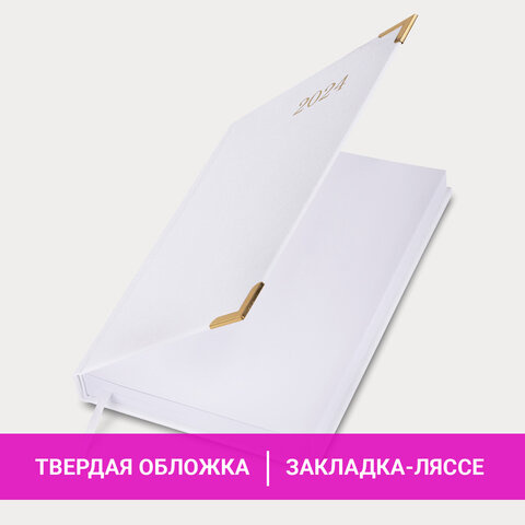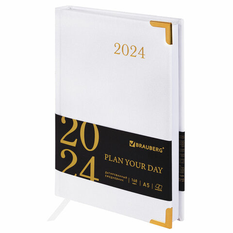 Ежедневник датированный Brauberg Senator белый, A5, под кожу, 2024