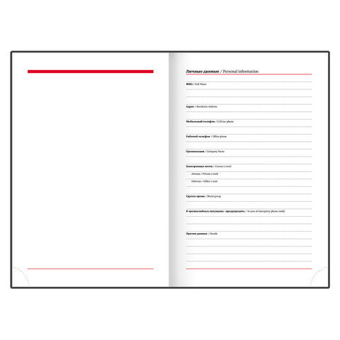 Внутренний блок включает 168 листов белой бумаги плотностью 70 г/м2. Каждая страничка имеет перфорированный угол. Благодаря стандартному формату А5 (138х213 мм) ежедневник удобно использовать как в офисе, так и на выездных деловых встречах. Твердая обложка, стилизованная под гладкую кожу классического белого цвета. Подходит для горячего тиснения. Ежедневник имеет металлические уголки, что придает ему особый шарм. Дополнением является закладка-ляссе, с помощью которой при необходимости можно быстро открыть ежедневник на нужной странице. Помимо прочего, ежедневник снабжен обширным справочным материалом.