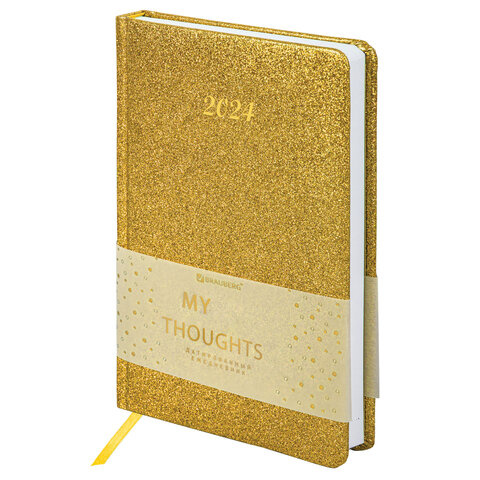 Ежедневник датированный Brauberg Sparkle золотистый, A5, под кожу, блестки, 2024